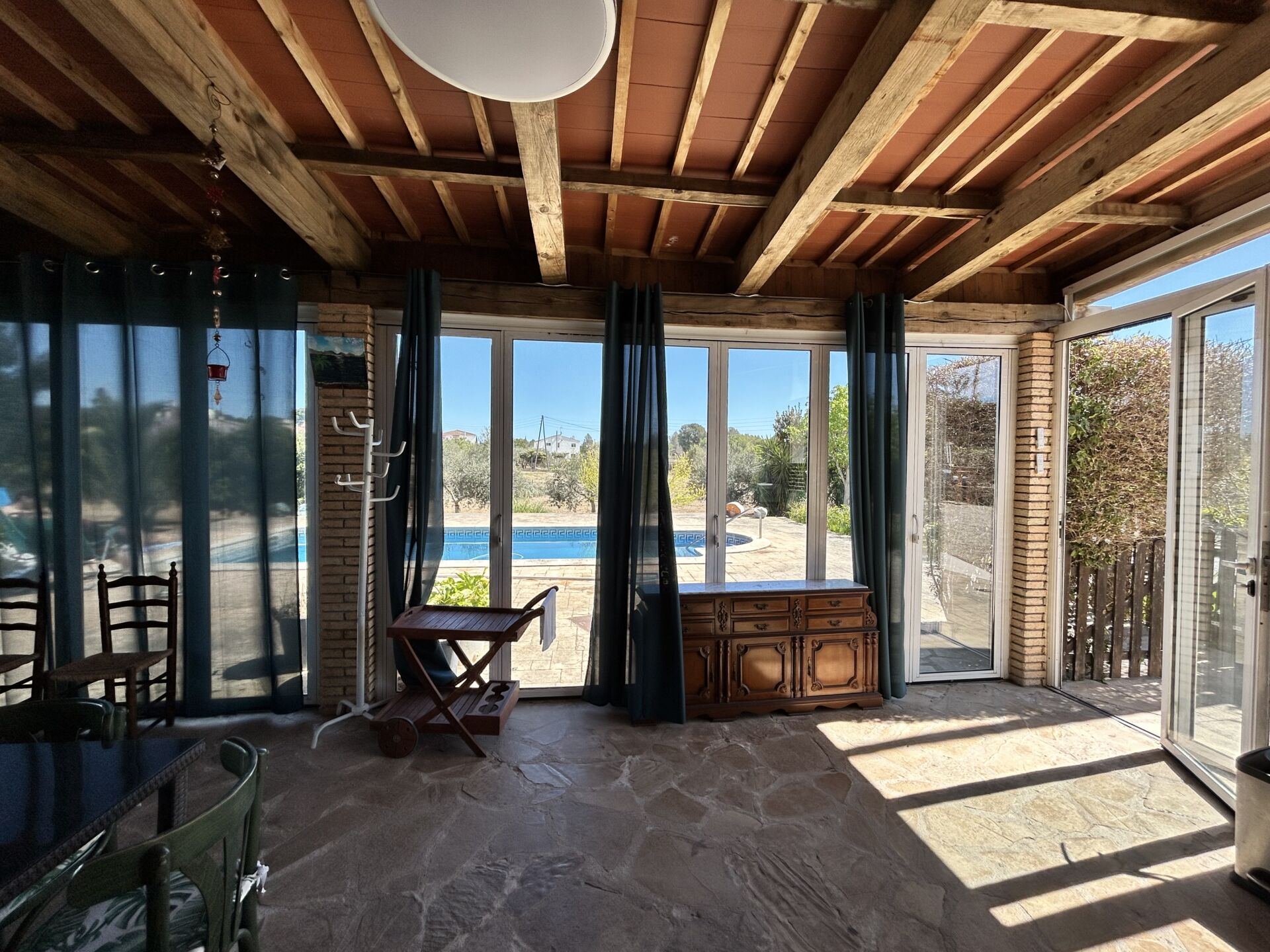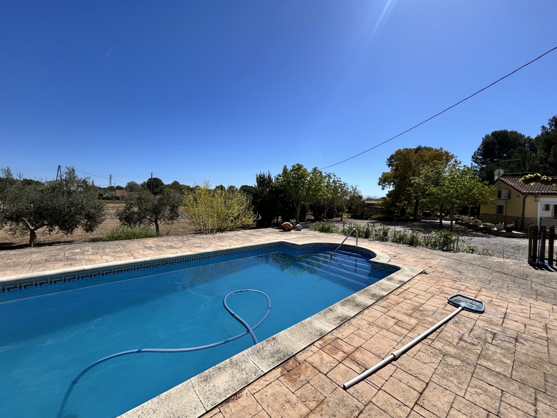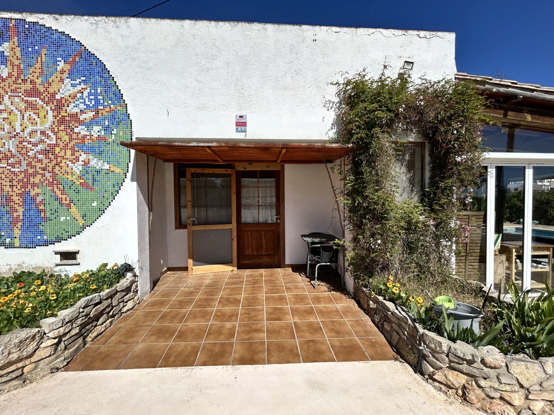 El exterior no se queda atrás: una hermosa terraza con grandes ventanales da acceso a la piscina exterior, donde podrás relajarte bajo el sol. La finca también alberga una variedad de árboles frutales como limoneros, naranjos y mandarineros, además de un huerto y tres huertos elevados que te permitirán disfrutar de la agricultura urbana.