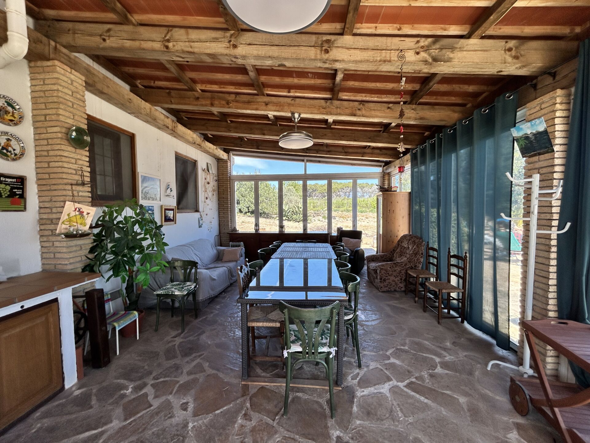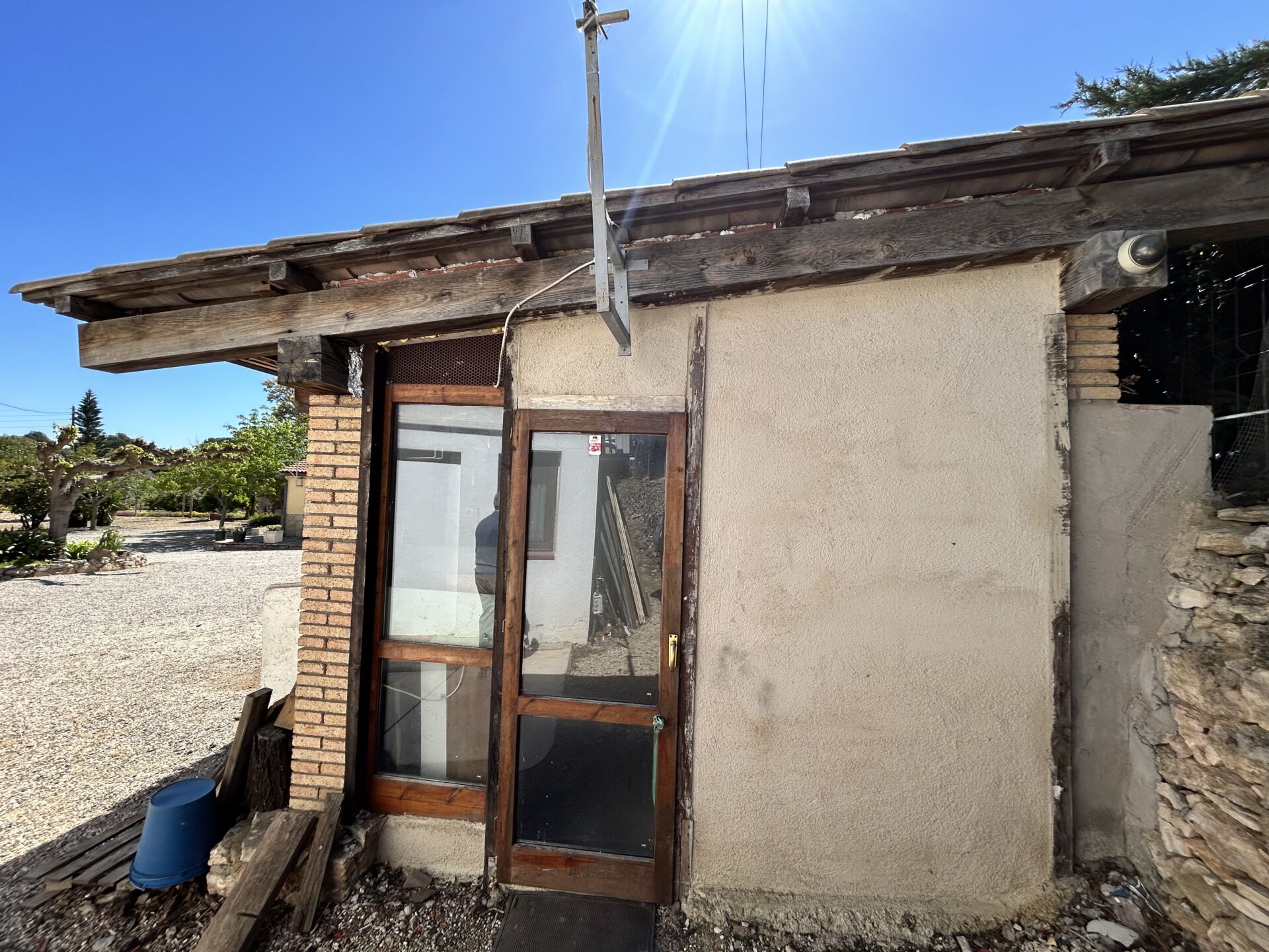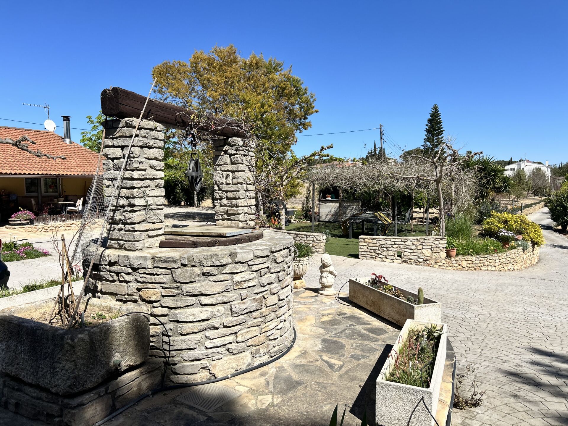 El exterior no se queda atrás: una hermosa terraza con grandes ventanales da acceso a la piscina exterior, donde podrás relajarte bajo el sol. La finca también alberga una variedad de árboles frutales como limoneros, naranjos y mandarineros, además de un huerto y tres huertos elevados que te permitirán disfrutar de la agricultura urbana.