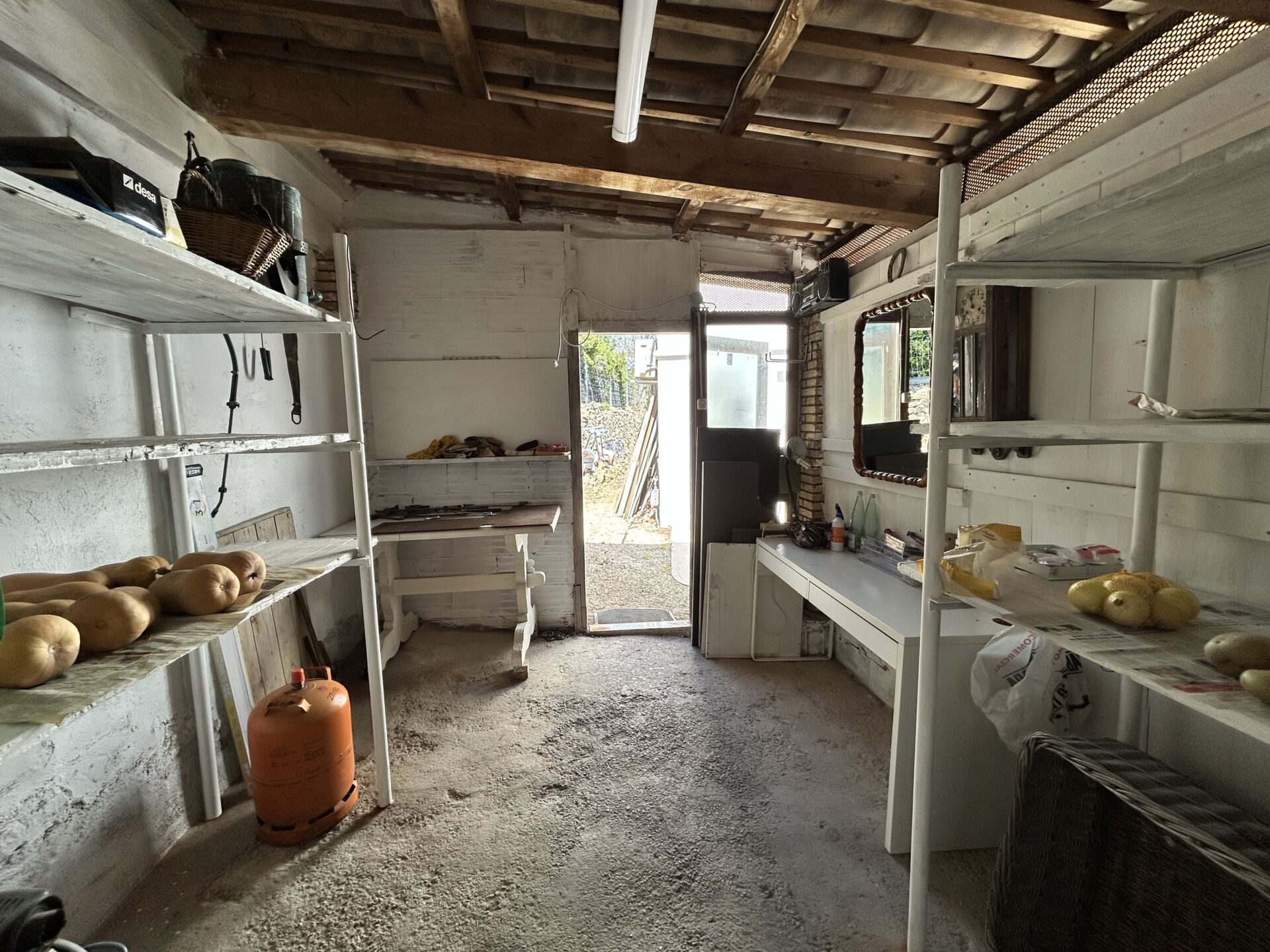 Además, el almacén reformado se ha convertido en dos casas adosadas de aproximadamente 60 m² cada una, cada una con su propia cocina-comedor y 2 habitaciones amplias, lo que las convierte en una excelente opción para recibir visitas o incluso generar ingresos extras.