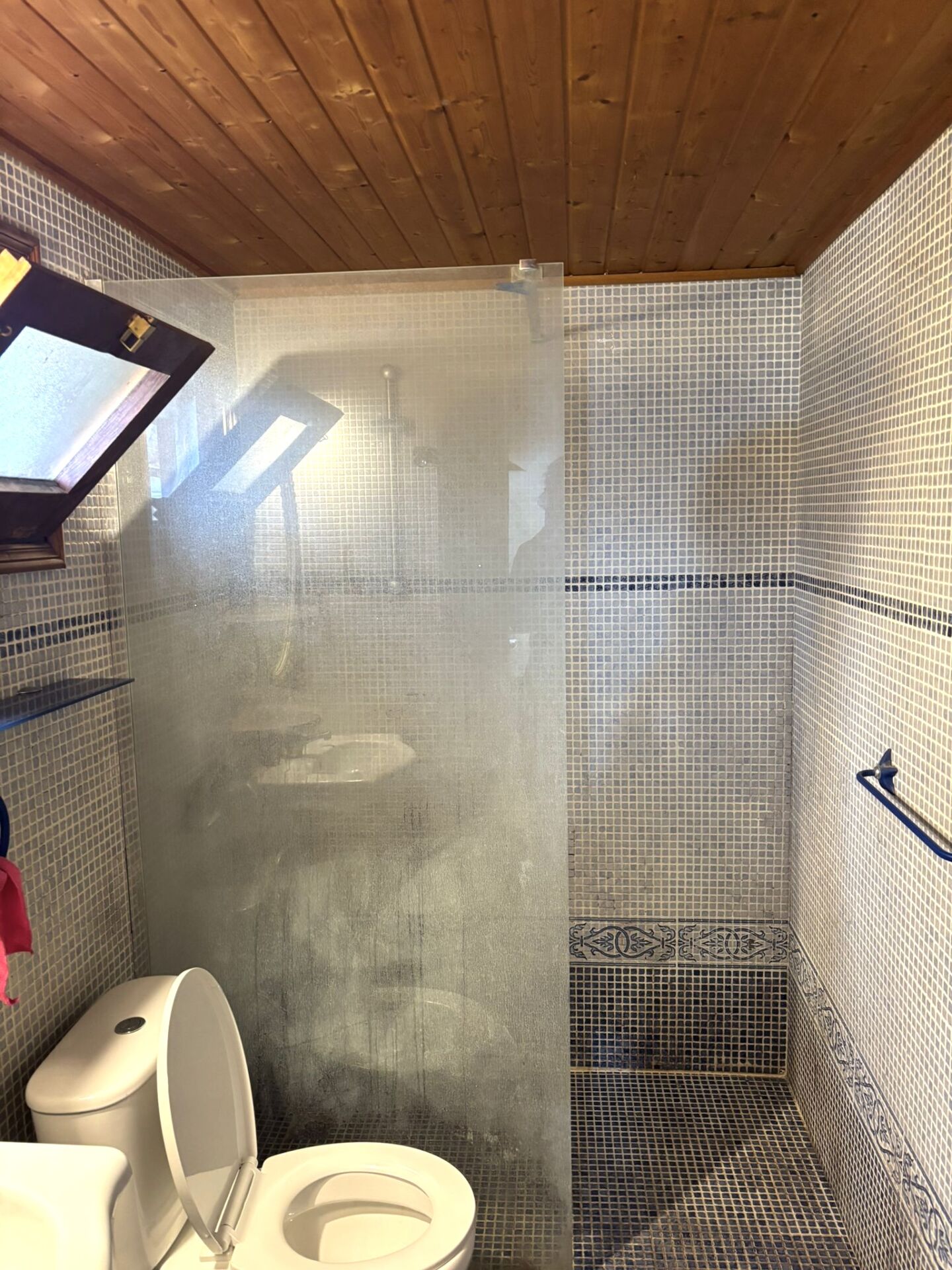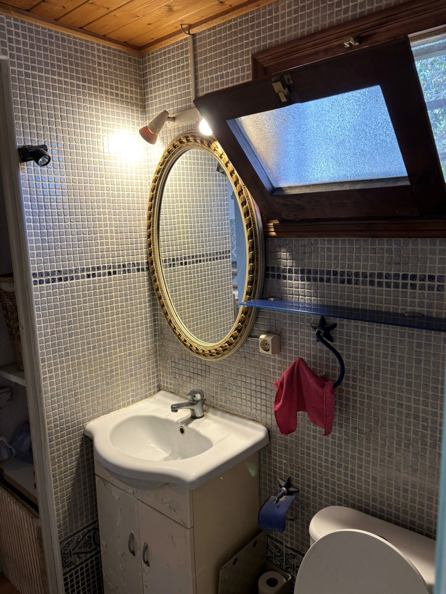 • Construcción de sofás interiores y exteriores de hormigón, con cojines nuevos y lavables • Reforma integral del baño, con mampara de ducha y sanitarios nuevos